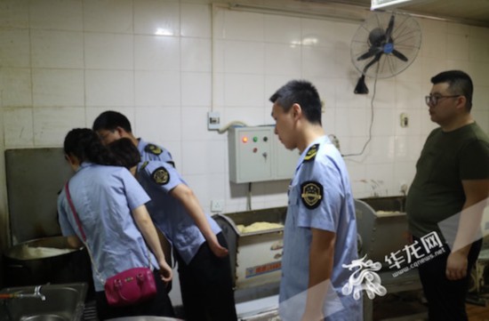 沙坪坝区食药监局执法人员在检查“陈昌银”麻花的歌乐山生产厂。